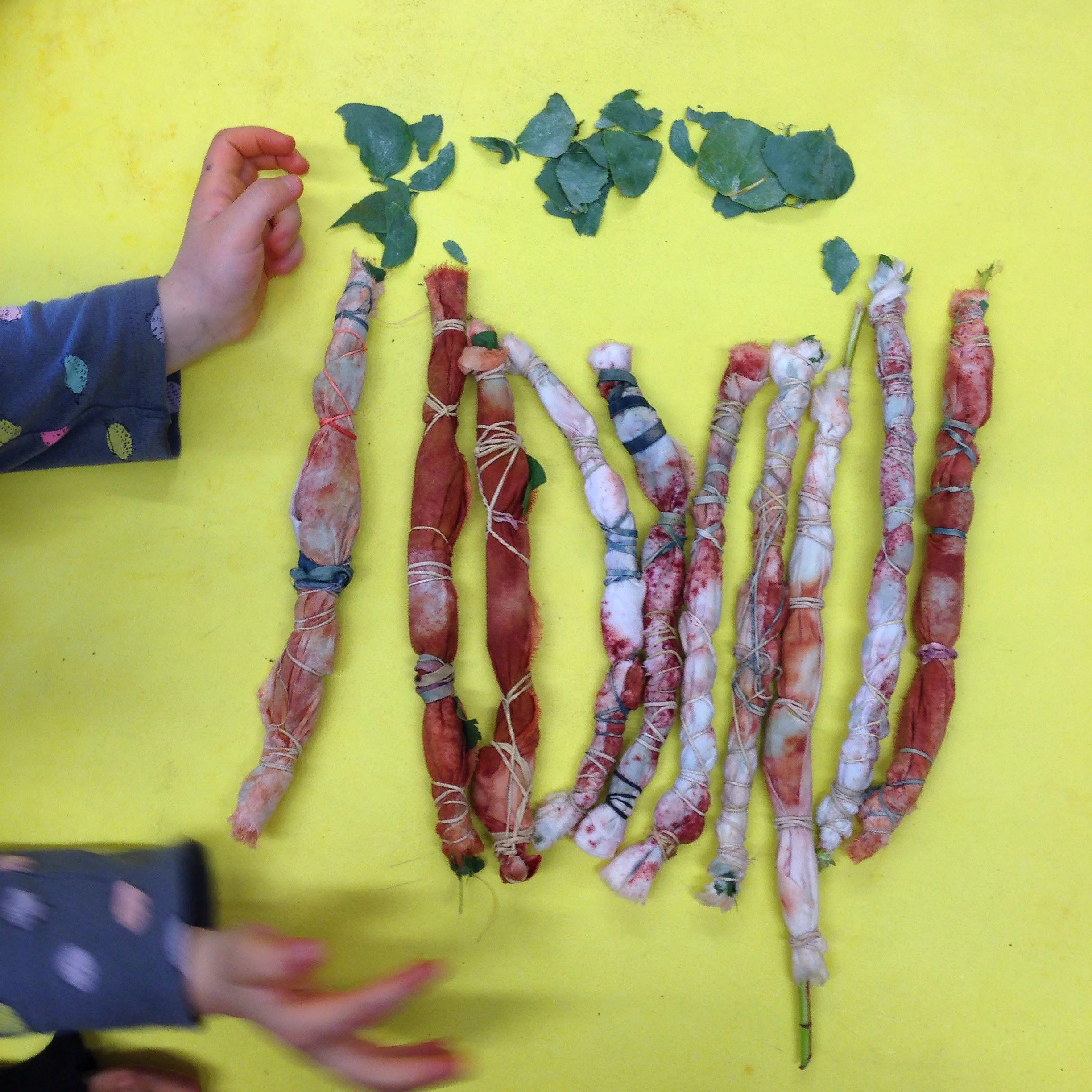 Students explore the fundamentals of color theory and how to dye textiles. They learn natural dye techniques, exploring how to achieve color through foods and plants familiar to them. They also use synthetic and fiber reactive dyes, learning how to mix and apply color. Students explore bundle dyeing, shibori, and resist techniques.